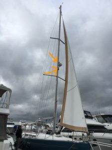 It took a few minutes to analyze the instructions, fit the ascenders onto the spinnaker halyard and start going. And it’s pretty slow-moving, but it works–and surprisingly it feels pretty secure.