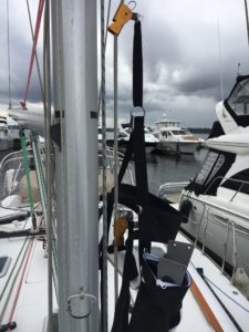 I also have the Spinlock Mast Pro Harness and I’ve gone up the mast a couple of times using that harness, with Devon at the winch controlling the halyard.