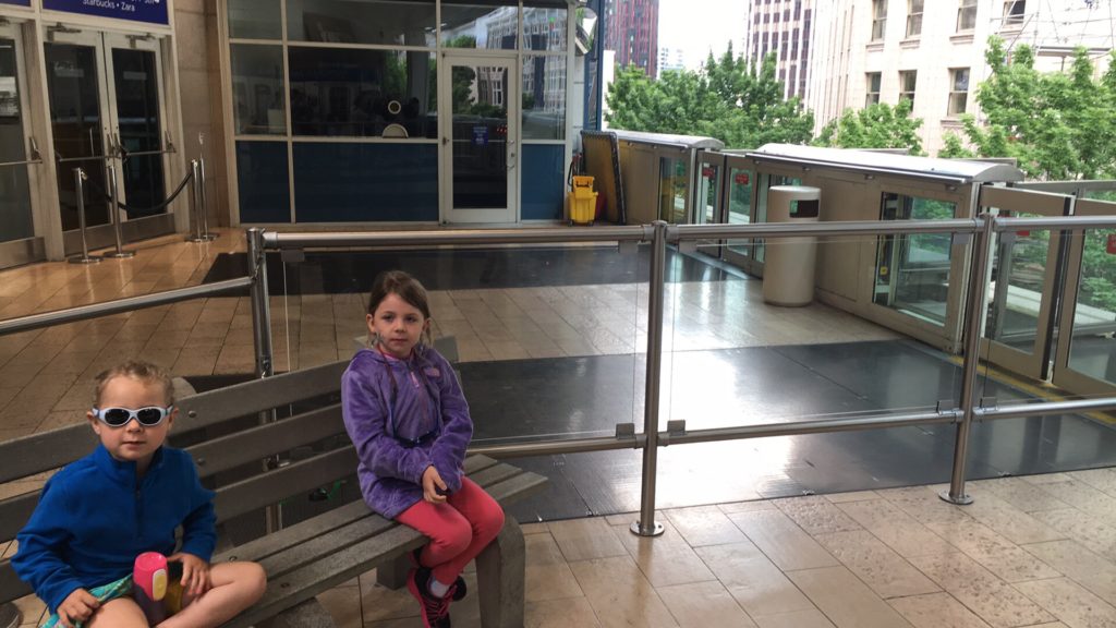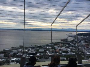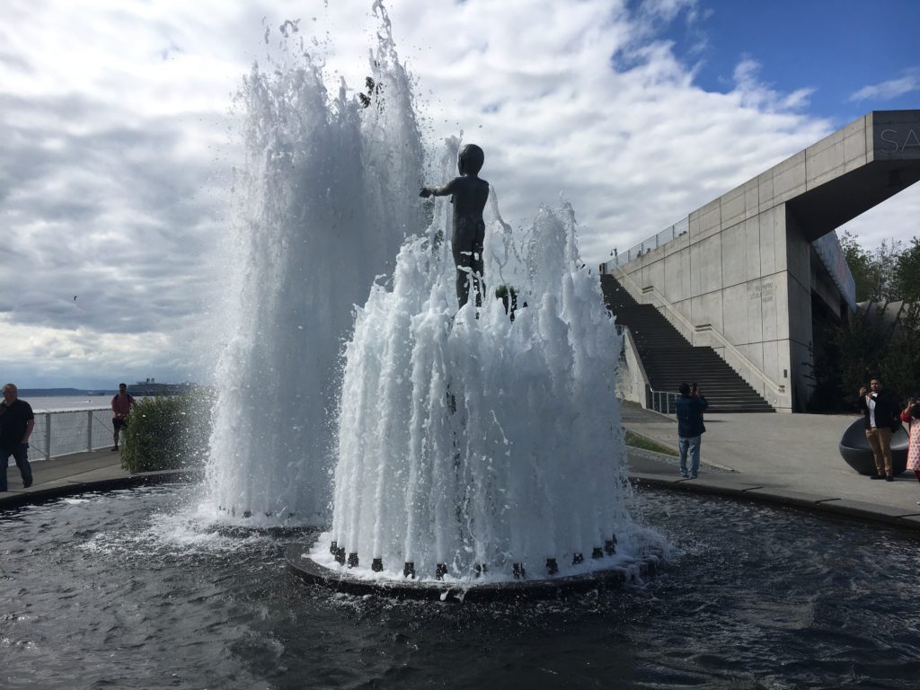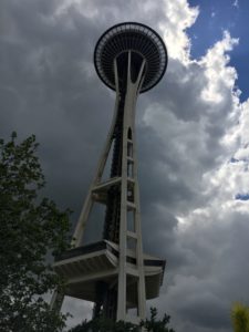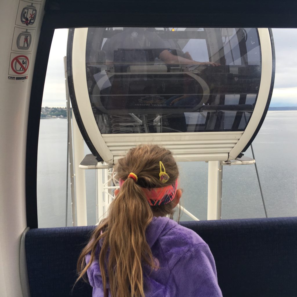 Since we’ve arrived, we’ve walked the waterfront a few times, visited the fantastic Seattle Aquarium on Pier 59, the “Great Wheel” Ferris wheel on Pier 57, the Wings over Washington ride also at Pier 57, Pike Place Market, the Artists at Play park at Seattle Center, dinner at the Space Needle, a variety of visits to Anthony’s, and breakfast at a VERY French restaurant called Le Pichet (hard time finding food for the kids but the two eggs and ham was very good). Both the girls were apprehensive about the Wings over Washington ride, but during the ride itself, Morgan just repeated “This is soo cool!” over and over.