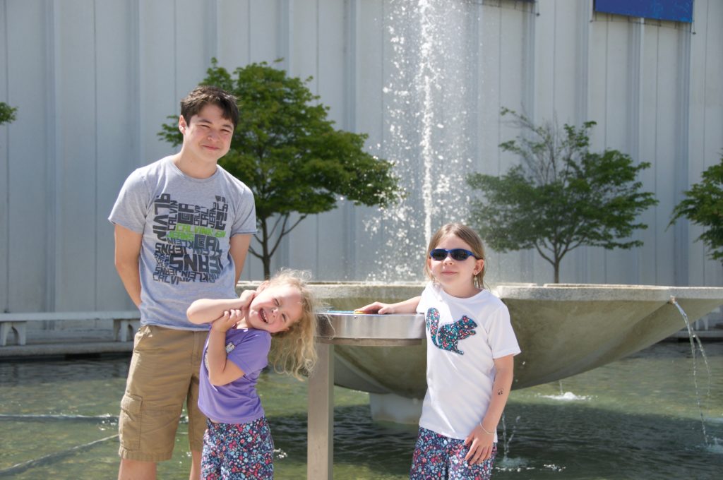 It’s the first time I’ve been to the Science Center in many years and it’s certainly been updated but still somehow feels a bit old at the same time. We learned about dinosaurs, space, physics, body health, and insects. There is an awesome butterfly exhibit where you can walk inside and the butterflies live inside. Unfortunately, Morgan didn’t want to go in because she was afraid to let the butterflies land on her. So, we checked out the other insects, naked rats, etc and moved on. Outside we played with some water physics toys, spraying a generator wheel with a high-pressure water gun, and walking inside a water wheel.