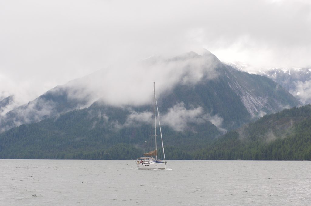 Our morning at Bishop Bay was Lazy, eventually we pulled anchor and headed out of the bay and around Grinnell Island looking for the scenic walled cliffs mentioned in the Waggonner Guide. It was misty and cloudy however so we didn’t see anything resembling the cool forested holes in the walls that the guide had talked about.