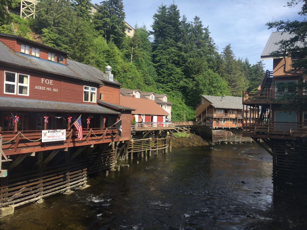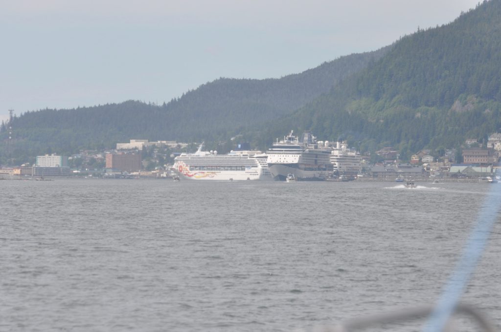 Once we motored into Tongass Narrows and Ketchikan harbor we saw tons of seaplanes, boats, kayaks, and three BIG cruise ships. We passed the cruise ships closely and tied up in our guest slip at Bar Harbor Marina, calling customs as instructed, who cleared us without a physical visit. Yay for NEXUS!
