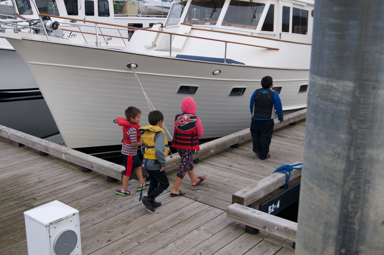 While the locals told stories and helped with fish preparation, local kids were also hanging out on the docks, apparently nieces and nephews of Haagoo who was the most talkative of the local men. We filled out the moorage paperwork, called the town hall to pay the fees over the phone, and we were all set.