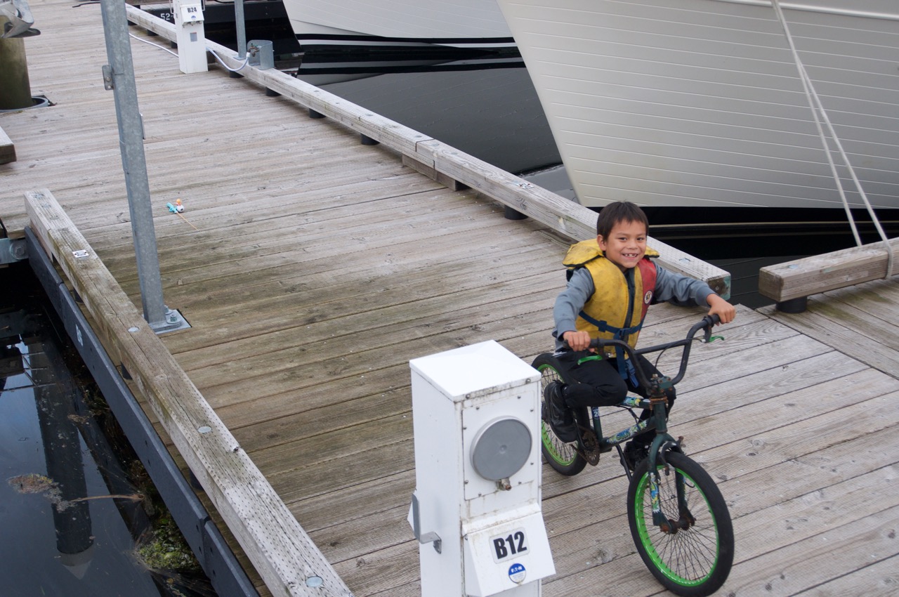 One boy dragged a child’s fishing pole behind his bicycle as he “trolled the dock” for gawkers.