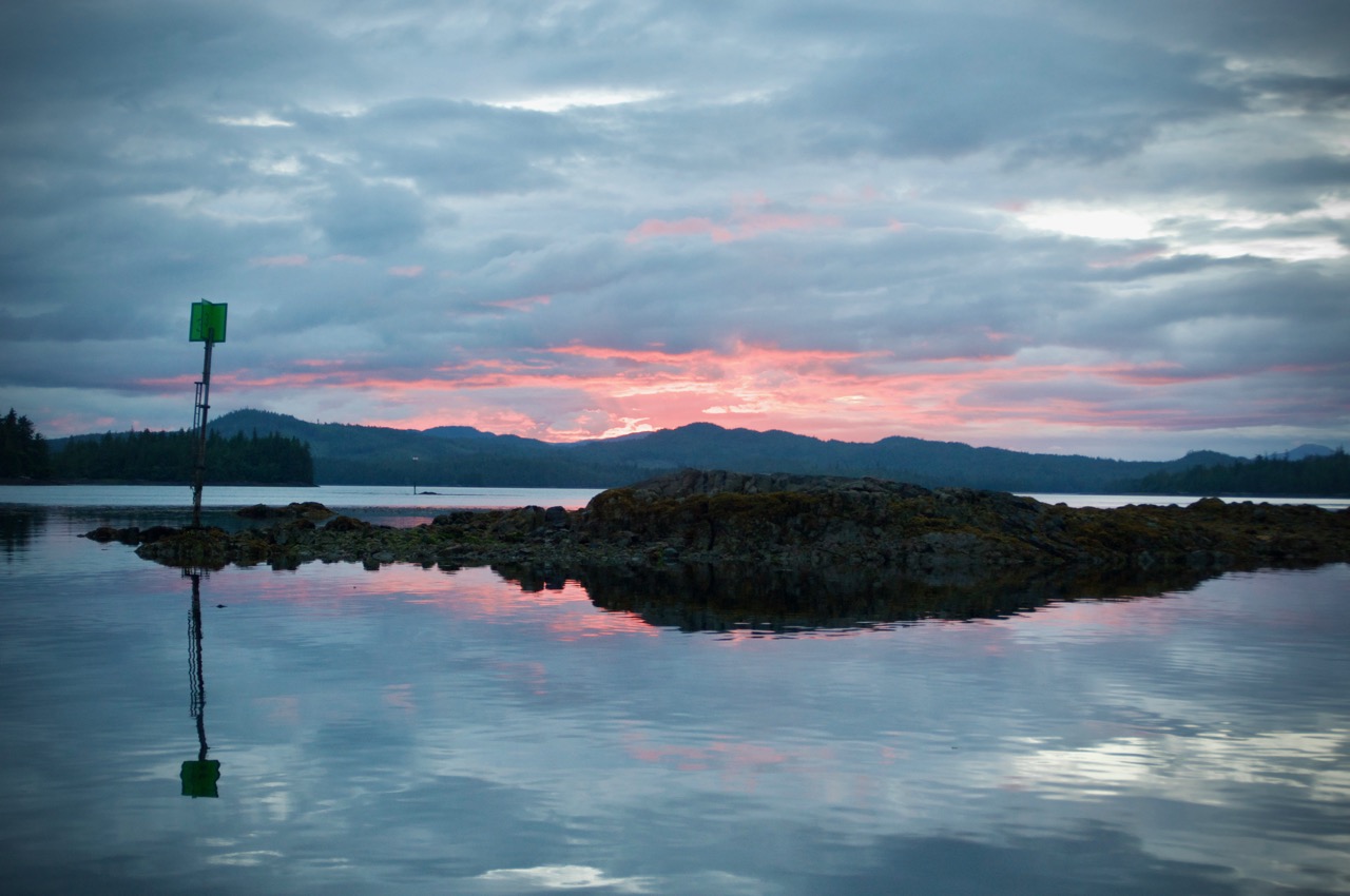 We got the boat out of Hydaburg on our way to Soda Bay, not too far away, and slowed down to troll for fish again. We caught one salmon, then lost a couple (one due to my completely non-excellent netting skills), then we lost the net overboard and as we retrieved it we got another fish on the line, that turned out to be a copper rockfish. After that we got back to cruising speed to get in to Soda Bay.