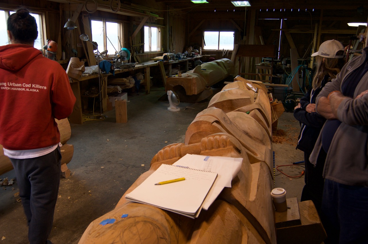 When we pulled into the docks, there were several townspeople there talking to all the boat crews about the history of the Haida people, about Hydaburg, fishing, native traditions, etc and about the carving house they wanted us to visit and the longhouse they are currently building.