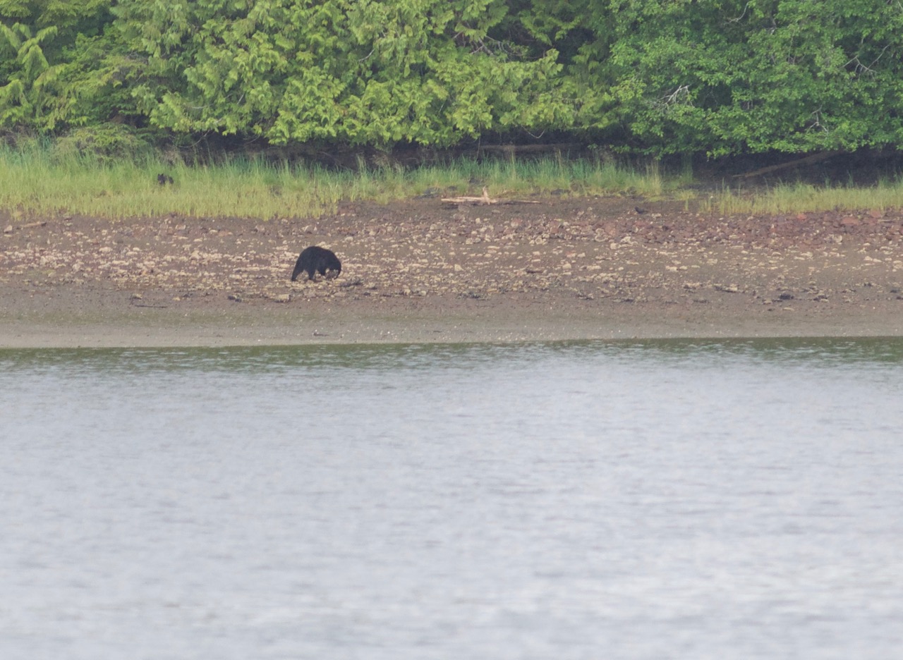 Meanwhile, Devon and the girls were on their hike for 5 hours, during which time the rain came down hard for some time. I also saw a black bear on shore with two cubs, somewhat near where the fleet’s dinghies were waiting. But the bear was gone by the time the crews came back to shore. Back at the boat, the girls were super wet and super tired, so they had some soup and hot cocoa and then they went to their beds to rest. It sounds like this hike was even more challenging than the bear hike in Hunter Bay, and certainly about twice as long.