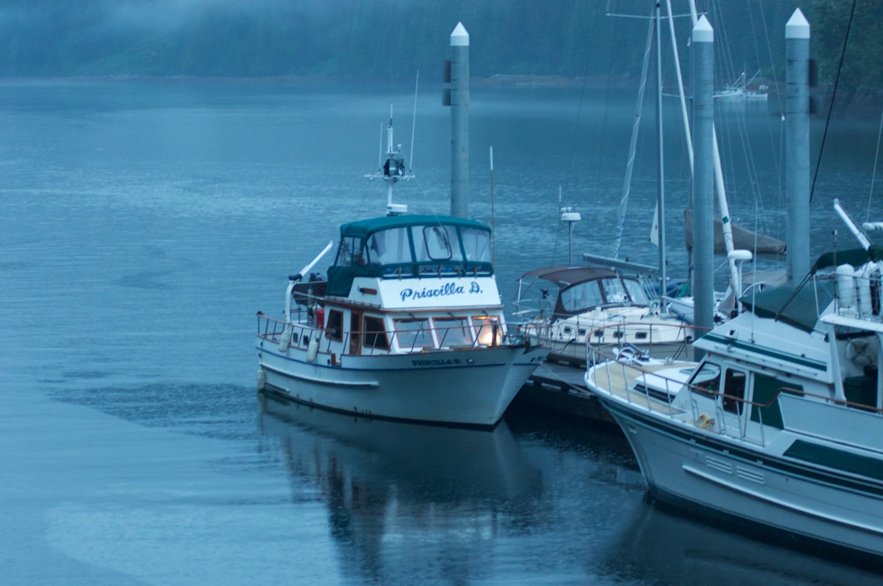 Once anchored, usually around 4, an entirely new set of chores begins. First, we rig and set the crab pot; then we rig the prawn trap (although we never actually get it set because the 600 feet of line we have for it has been tangled since the first time we used it, and we haven’t had a chance to untangle it); then we set the halibut rod (which has yet to produce a halibut, or any other sea creature); and on a good day, we have time for an hour or so to kayak around with the girls or explore the shore with them before it’s time to start dinner (which lately is always salmon).