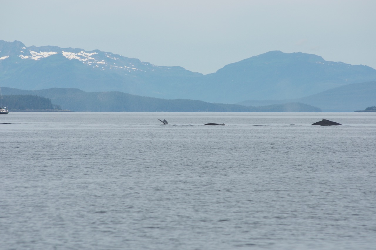 The sunshine itself wasn’t the first good omen of the day; as I proceeded out of the inner bay, and into the larger bay, I saw several whale spouts up ahead. It was a family of three humpbacks, including one small one, playing or spy hopping in the calm harbor.