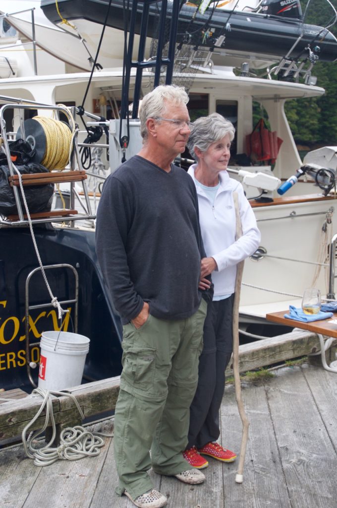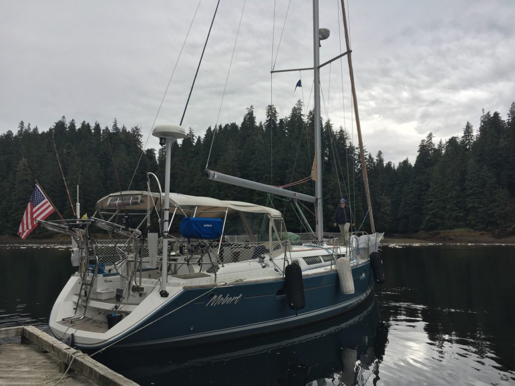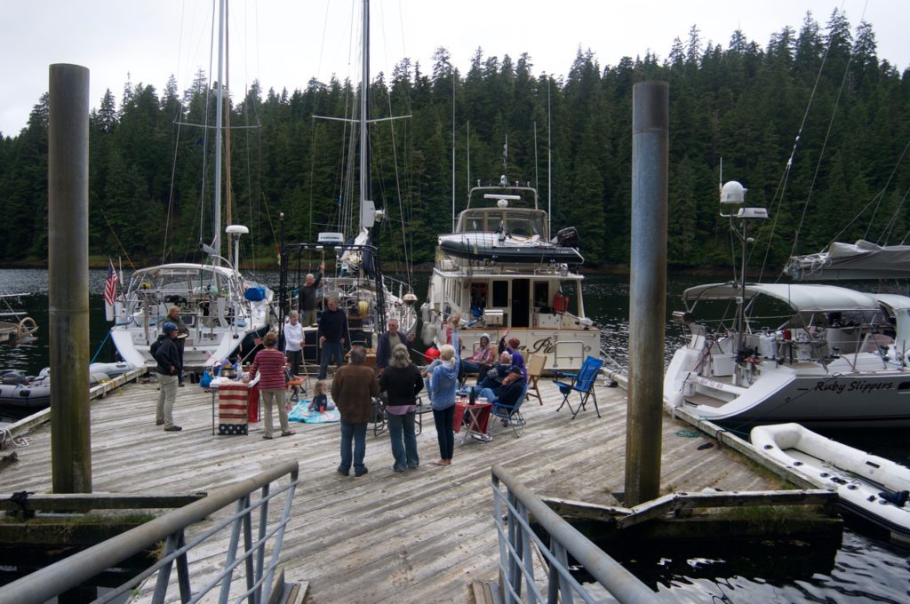 Morning in Loring was lazy. We eventually got dressed and moving, coming out on the dock for visiting with the other boats. About mid-day Jim decided it was time to “fix” the rafting situation and covert it to a med-moor setup. So we released the lines from Sea Pie and motored out of the way. Sea Pie untied from Foxy and motored out of the way as well, then Foxy moved out. After that, Sea Pie started first, dropping anchor 20 degrees to starboard and backing up to the dock. Foxy dropped their anchor directly off the bow and backed up along side Sea Pie’s port side. Then we dropped our anchor about 20 degrees to port and backup along side Foxy. All said and done we had 153 feet of boats tied to 45 feet of dock space, with everyone having direct access to the dock from their stern.