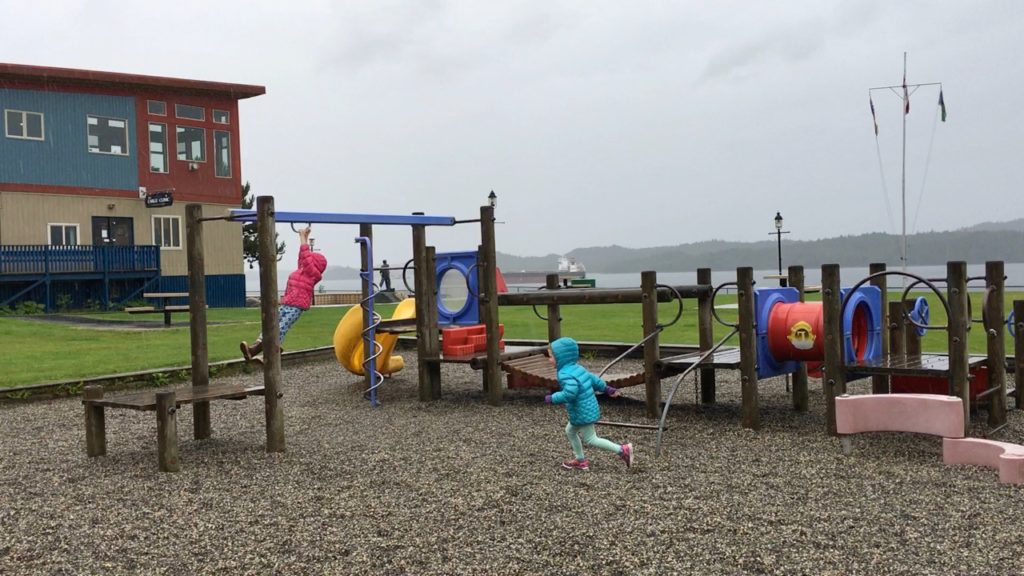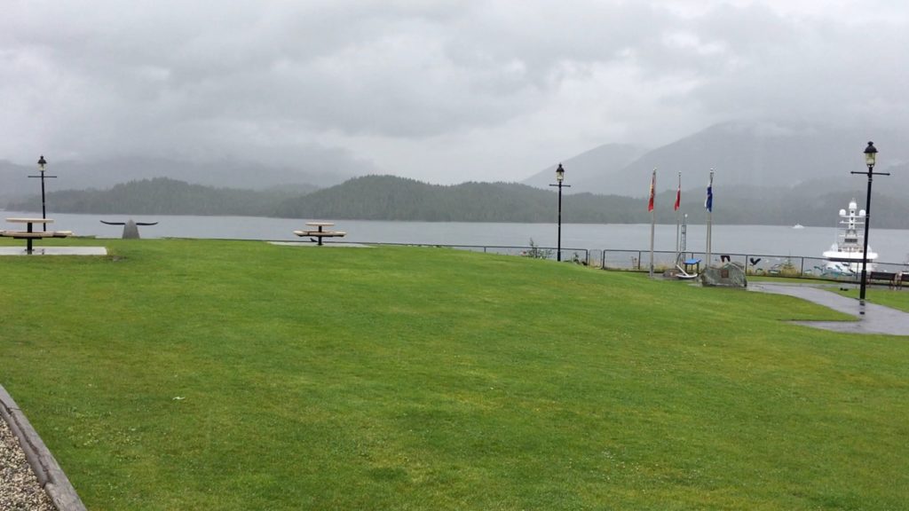 We spent a whole day at Prince Rupert, aka Rainy Rupert, where it rained all day. The Thursday gale came through and blew a ton of wind in Prince Rupert harbor as well as out in the open water. Prince Rupert Coast Guard and Prince Rupert Traffic radioed gale warnings all day, suggesting anchored vessels have a second anchor ready. The 237 foot yacht CloudBreak, complete with custom helicopter, sat along the breakwater, deciding in the afternoon that they should move closer to the airport (in the gale) so they could land the helicopter (in the gale) to bring the owner and his guests on board (in the gale). Unfortunately the professional local pilot on board forgot to radio Prince Rupert Traffic and about 50 feet off the breakwater they got a call that was not literally, but pretty close to “What the hell are you doing, where are you going, why didn’t you tell us before you departed.?” After apologizing, the skipper explained their plans (landing a helicopter on the deck of a yacht in a gale) they were offered two official anchorages to choose from, eventually settling on the second one due to the first having little to no wind protection.
