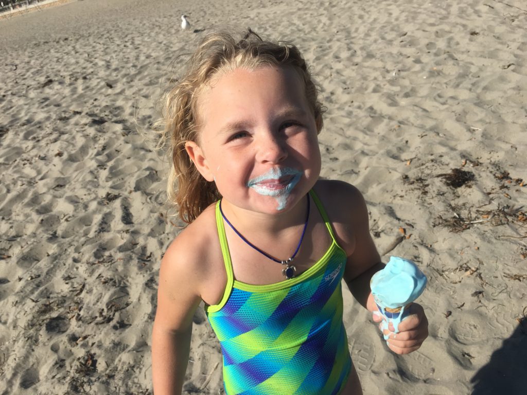 It was the first real beach day we had! In four years of saving and planning, we pictured every day on the boat like this – sun, white sand, a few good friends, parents relaxing on the beach while the kids played in the surf. It was finally here – and we enjoyed the heck out of it. And of course, a trip to the ice cream shop was in order.