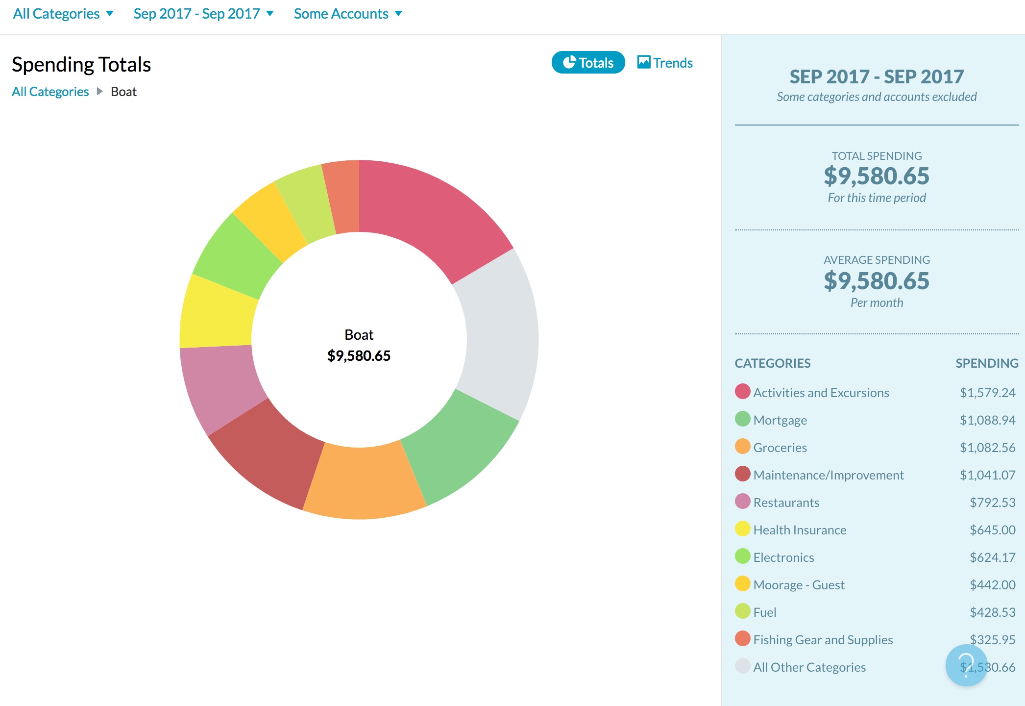 | Fuel | $ 428.53 | This is down about $200 from August, thanks to many more opportunities to sail! |