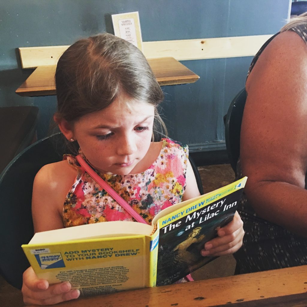 The next morning, we got a car tour of town, and its various neighborhoods. We drove back through Old Town, and then over to and through Balboa Park. We were going to stop, but parking was tight, and we were getting hungry. So, we drove through some of the neighborhoods Aunt Cindy and Uncle Dana wanted to buy homes in. In one of them, we found a great little cafe for lunch, complete with a small library for the kids to browse while they waited for their food. Morgan found a Nancy Drew book, and we didn’t hear a peep out of her for at least 15 minutes. After lunch, we walked to the library and playground across the street, and stretched our legs before getting back in the car. We circled back around to Mission Beach and the apartment, and spent another afternoon boogie boarding on the beach.
