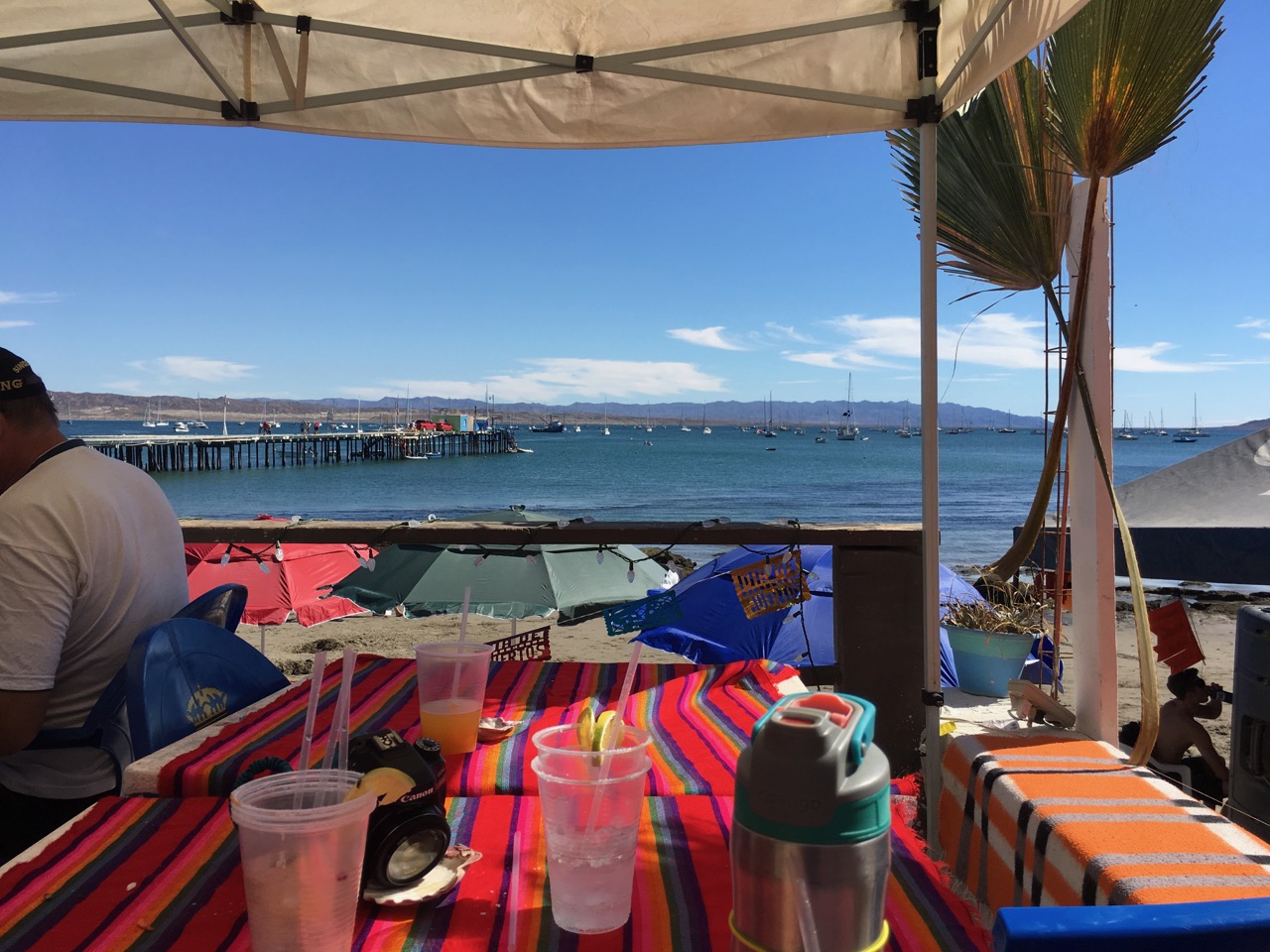 Although it appears to be a fishing town, I expect the residents here make at least a quarter, if not half, of their annual income the two days each year that the Baja is in town. The beachfront is freshly painted, with signs welcoming the Baja at every business. The 4 small restaurants in town – which appear to be set up on a typical night to handle just one or two groups of guests – are overwhelmed with customers. The mismatched and paper plates suggested that the employees were asked to bring their own dishes to the restaurant for the Baja Days, because otherwise the restaurants would not be able to serve their guests. All day long, you can see pickup trucks unloading ice at their families’ restaurants. By the time we left the town, they’d run out of tequila. (Not joking.)