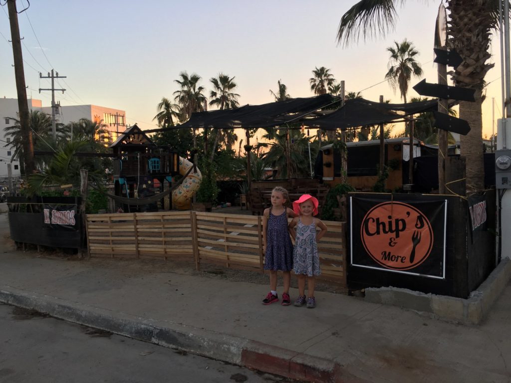 Just around the corner from the marina, we discovered a cute little cooking shack set up in what must have been someone’s front yard, with a few wood tables and chairs, and a big toy-style swingset off to the side. The sign out front appeared new, and read, “Chips & More.” We entered through the front gate, and all four girls darted straight for the toys, and started to climb and play. The adults pulled a few tables together, and ordered tacos and burgers.