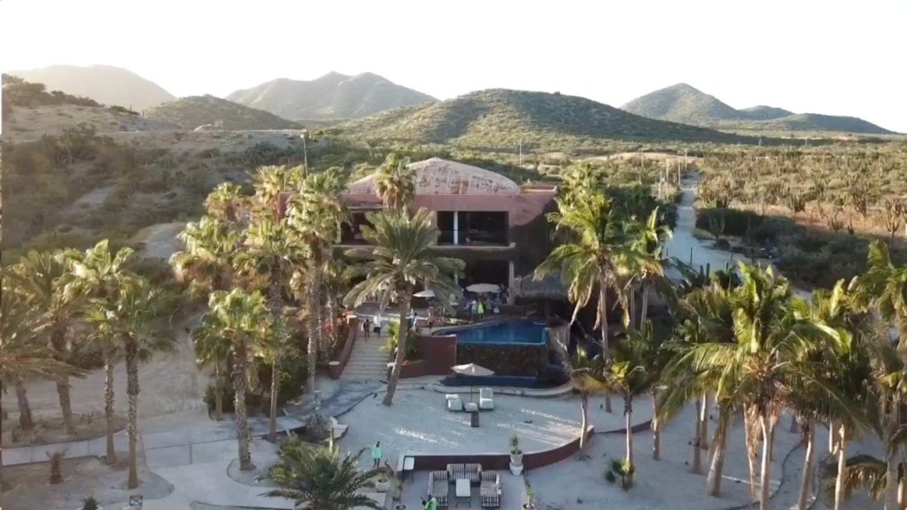 With the wind up, the evening was comfortably cool, and bugs nowhere in sight. We lowered the dinghy and made our way to shore for dinner at what we thought was the only restaurant in the bay. The food was fine, and the staff – as it’s been everywhere we’ve gone in Mexico – superior in hospitality. The layout of the restaurant was a bit strange – a wide open floor plan with a bar and small kitchen at one end – and after looking around we realized why. Around the corner, attached to the restaurant was a windowed office labeled “Bahía de Sueños Sales Office.” We were in what either is or was the “free breakfast” sales office for some kind of resort timeshare development. Other than the sales office, though, we didn’t see any signs of a resort in sight. That was the second surprise, and the first mystery.