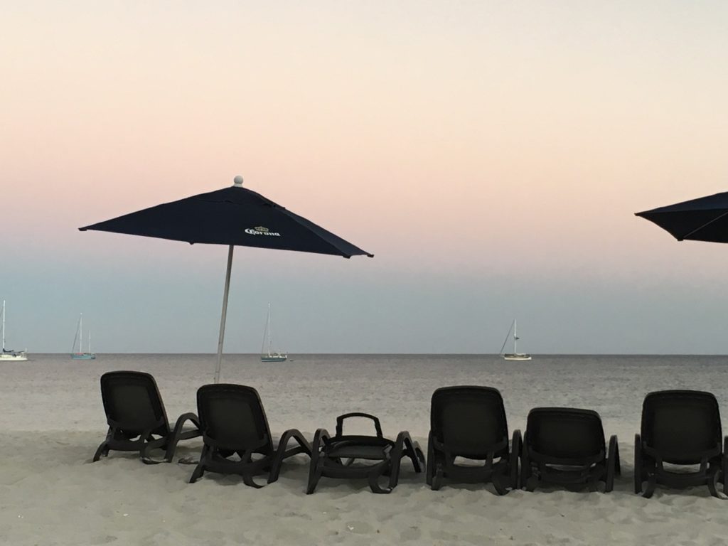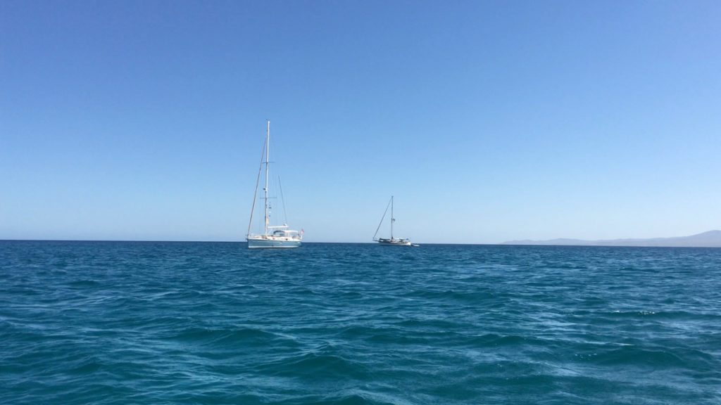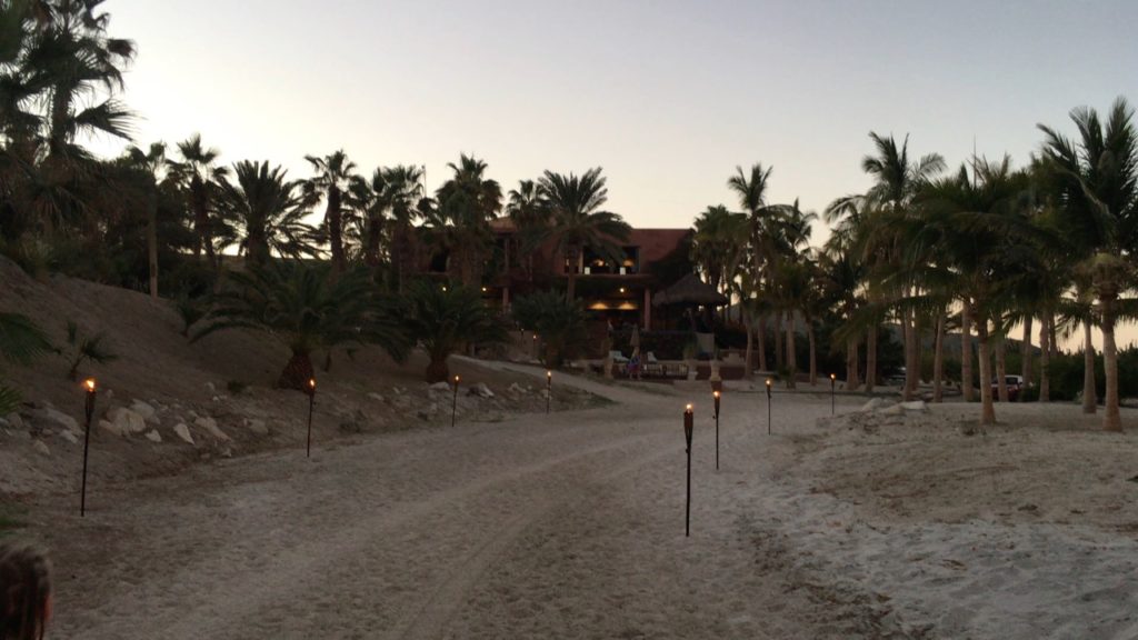 We spent that whole first day at the restaurant, snacking, relaxing, swimming (spoiler alert – a crazy pool was one of the surprises), and playing. We couldn’t believe what we’d stumbled on. Around lunchtime, Aksel and his family showed up, and so did Sassafras. I got involved in a great game of Carcassonne with the ladies of the Sassafras crew, along with April from Westy, and we played for over an hour until the skeeters came out and ruined our game. Sassafras headed back to their boat, but we opted to stay for late afternoon cocktails, and then dinner. After a great steak, and a $150 bill for breakfast, lunch, dinner, and drinks, we made our way back down the (correct) arroyo to our dinghy, in the unlit darkness. The sand was, by now, cold, but still silky smooth on our feet as we made our way to the beach. With the help of phone flashlights, we found our dinghy, and started the hunt for our boat.