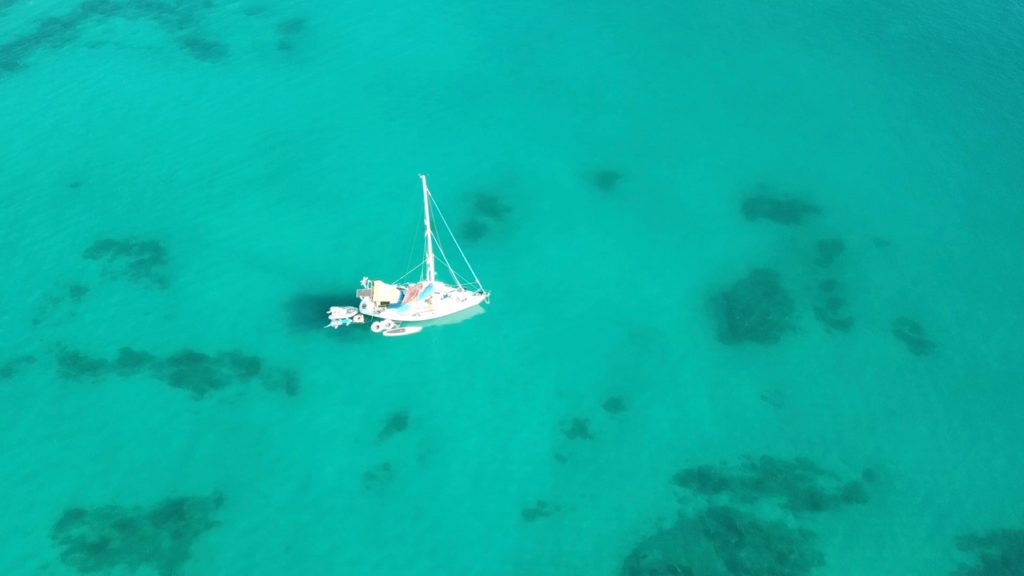 We arrived around dinner time the first night, and that was when we got our first surprise. After a fantastic upwind sail from Los Frailes to Muertos, we nosed into the harbor in 15 knots of wind. As we searched for the perfect spot to anchor, we saw ominous dark spots in the water – what could it be? We were in 20 feet of water – was it something dangerous? We proceeded cautiously, and then we got our first surprise: The water was so clear we could see each and every rock on the bottom! As our eyes adjusted, we began to see the waves of sand blanketing the bottom, and even some fish as they came to check out the newcomer to their cozy cove.