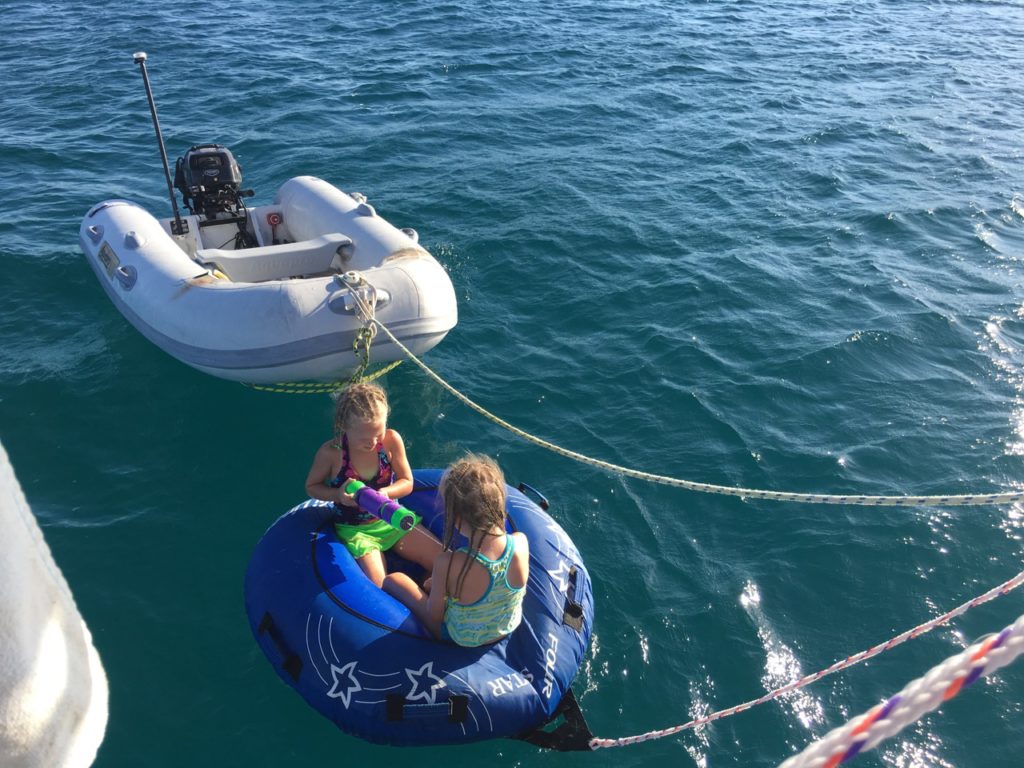 This time, we had the foresight to bring out dinghy lights and turn the anchor light on, so our trip back to the boat in the dark was a little easier. Completely wiped from an amazing day, the girls went right to bed.