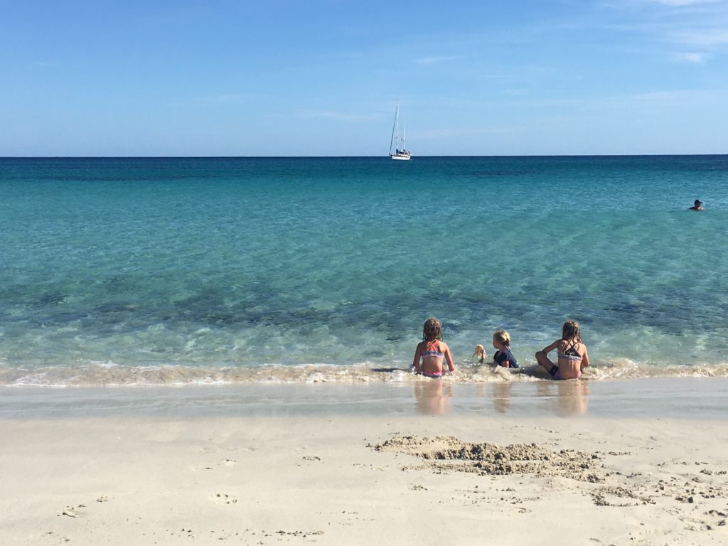 (November 21-22, 2017) We had to get through school the next morning before we could go play on the beach with London. I was hoping the beach date with the girls’ new friend would motivate them, but school that day was an unnecessarily long process – as usual. It was nearly lunchtime before the girls finished their work, and after packing a quick beach lunch, we headed for land. Rich stayed behind to work on a few boat projects.