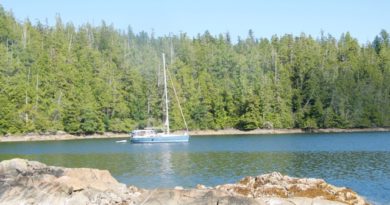 Somehow, they got hold of an empty wine bottle, and put a message inside it. We held a small ceremony at sunset to launch it. It said to contact the girls from Taliesin Rose, and I don’t think they’ve heard back from anyone who’s found it yet. We all had a good night’s sleep, and prepared to head north in the morning.